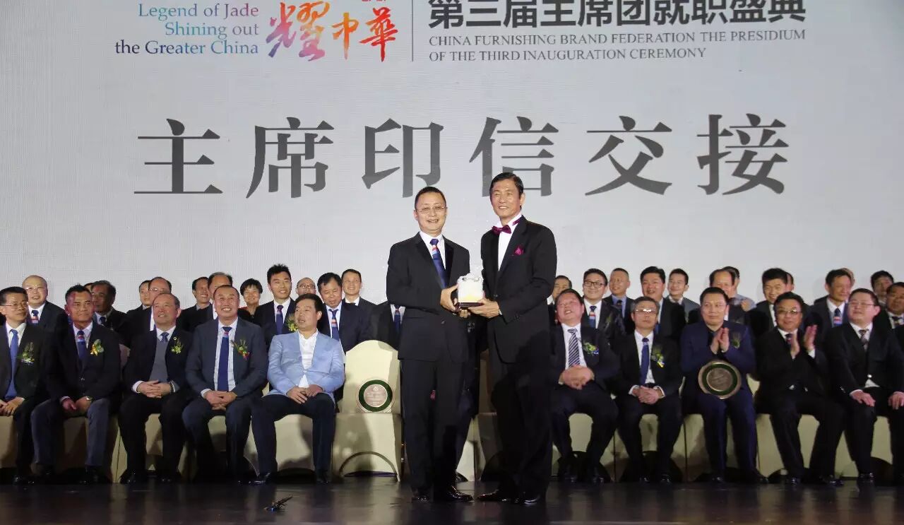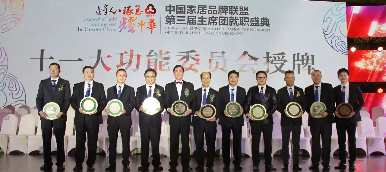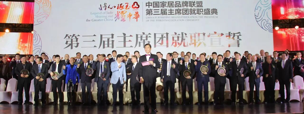新当选的第三届中国家居品牌联盟主席运时通控股集团董事长陈燕木先生和第三届主席团成员举行了隆重的就职盛典。