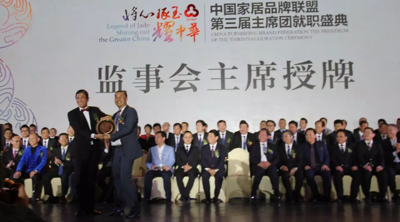 第三届中国家居品牌联盟主席运时通控股集团董事长陈燕木先生同熊建涛先生进行了监事会主席授牌仪式。中国家居品牌联盟监事会主席熊建涛说:”中国家居品牌联盟的长远发展,需要所有联盟主席上下一心、齐心协力、凝聚力量,联盟才会保持永久活力。同时也需要建立规范的机制和行业互通渠道,联动所有力量,一起将联盟做大做强!“